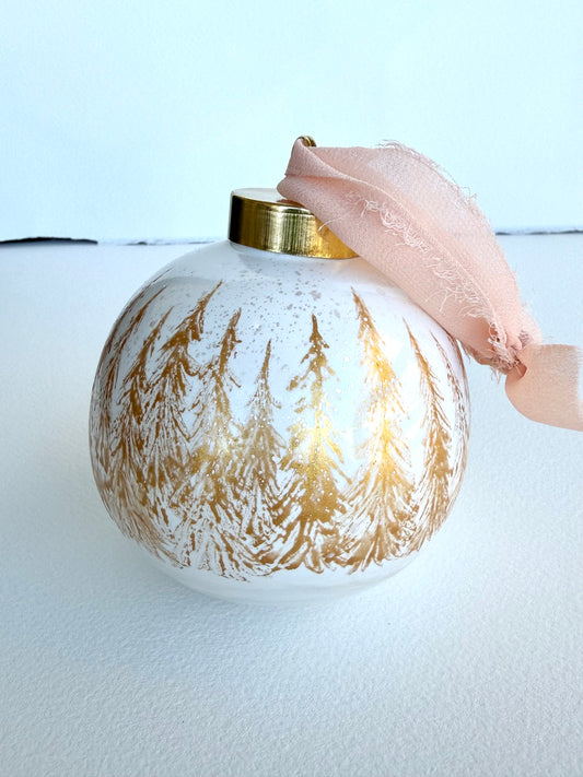 This collection of ornaments is inspired by my home state of Idaho. Christmastime in Idaho is so beautiful with the falling snow and large pine trees dusted in snow. I wanted to capture that traditional Christmas look in an ornament that brings that feeling right to your home for the holidays every year.